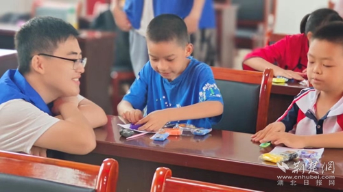 “咱們這個暑期托管班特別受歡迎,總共有12名老師,全都來自于武漢工程學院的暑期志愿團隊?!北鈸鷪创羼v村國干楊啟佳介紹,在一次垸子夜話中,有居民提到,希望村里幫忙解決孩子暑假的照管問題。