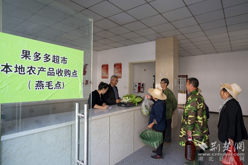 在洗馬鎮,有很多像謝桂枝一樣提供自家種植果蔬的村民,他們只需將果蔬送往收購地點,就可以現場清算結現。果多多超市為當地群眾解決了銷售的后顧之憂,也提高了群眾的種植信心和熱情。