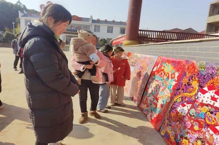 在志愿者們的精心布置下,造型各異、栩栩如生的年畫及剪紙春聯(lián)吸引了老百姓的駐足觀賞。每一幅年畫作品,都象征著吉祥,包含著滿滿的心意與祝福,表達了人們對美好生活的向往。