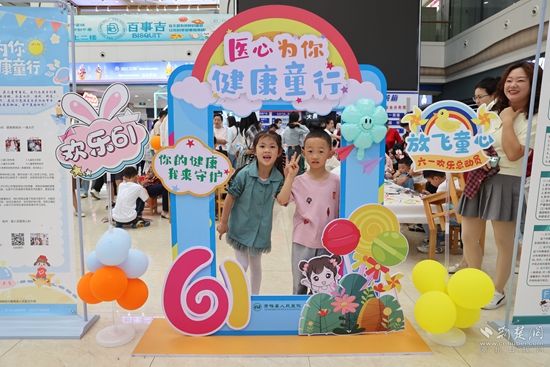 醫務人員利用氣球、打卡墻、展板、飄帶等將活動場地布置一新。義診區域,來自兒科、眼科、耳鼻咽喉頭頸外科、口腔科等科室的專家團隊,為來往的的兒童進行口腔檢查、視力篩查、鼾癥篩查、生長發育、哮喘病咨詢等,并提供常見病疑問解答。