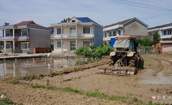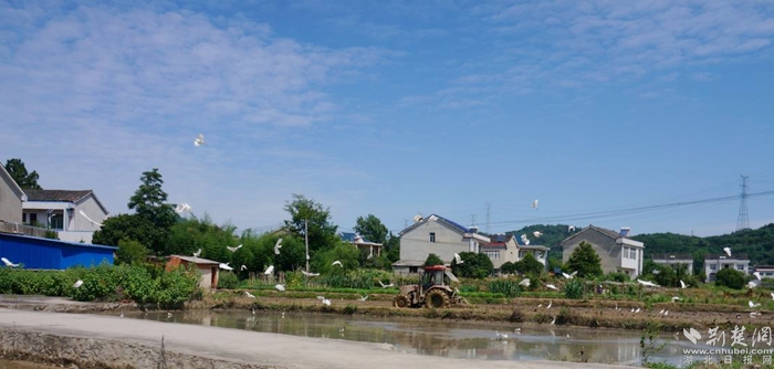 荊楚網(wǎng)(湖北日報網(wǎng))訊(通訊員 瞿澤敏)6月3日上午,在鄂城區(qū)汀祖鎮(zhèn)桂花村楊家壢灣的農(nóng)田里,種植戶劉堂云正熟練地駕駛著農(nóng)機耕田犁地,成群白鷺伴隨著耕作的農(nóng)機上下飛舞,一會兒覓食,一會嬉戲追逐,構(gòu)成了一幅美麗的鄉(xiāng)村田園生態(tài)畫卷。