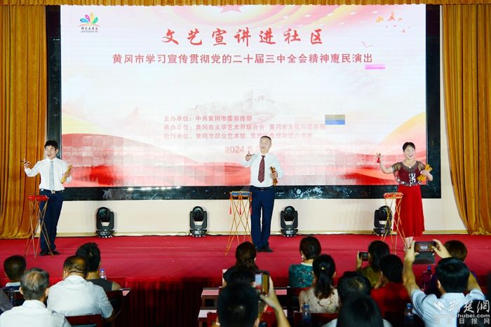8月23日晚,在古城黃州建新社區(qū)大禮堂里,琴聲悠揚(yáng),掌聲不斷,熱鬧非凡,這里正在舉行“文藝宣講進(jìn)社區(qū)—黃岡市宣傳貫徹黨的二十屆三中全會精神惠民演出活動”,本次活動由黃岡市委宣傳部主辦,市文聯(lián)、市文旅局承辦,市群藝館、黃州區(qū)赤壁街道辦事處執(zhí)行承辦,市區(qū)相關(guān)部門負(fù)責(zé)人、建新及周邊社區(qū)居民300多人現(xiàn)場觀看。