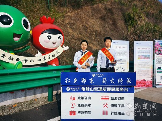 “早就聽說春天的龜峰山很震撼,沒想到連冬天都這么美,今年一定要帶著家人來玩一趟。”來自湖北武漢的司機陳先生開心地告訴志愿者。