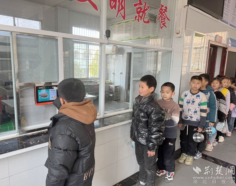 荊楚網(湖北日報網)訊(通訊員 潘雪菲 黃漢洲 鄭志敏 )3月5日,午飯時間,筆者在紅安縣列寧小學食堂看到,學生們手拿餐具井然有序的排隊打餐,不需要刷卡,只需在食堂窗口前站一站,識別機器就敏銳的捕捉人臉,“滴”的一聲,“扣款成功”。