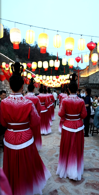 古城墻下,楚服女子向大家發出盛情邀請。