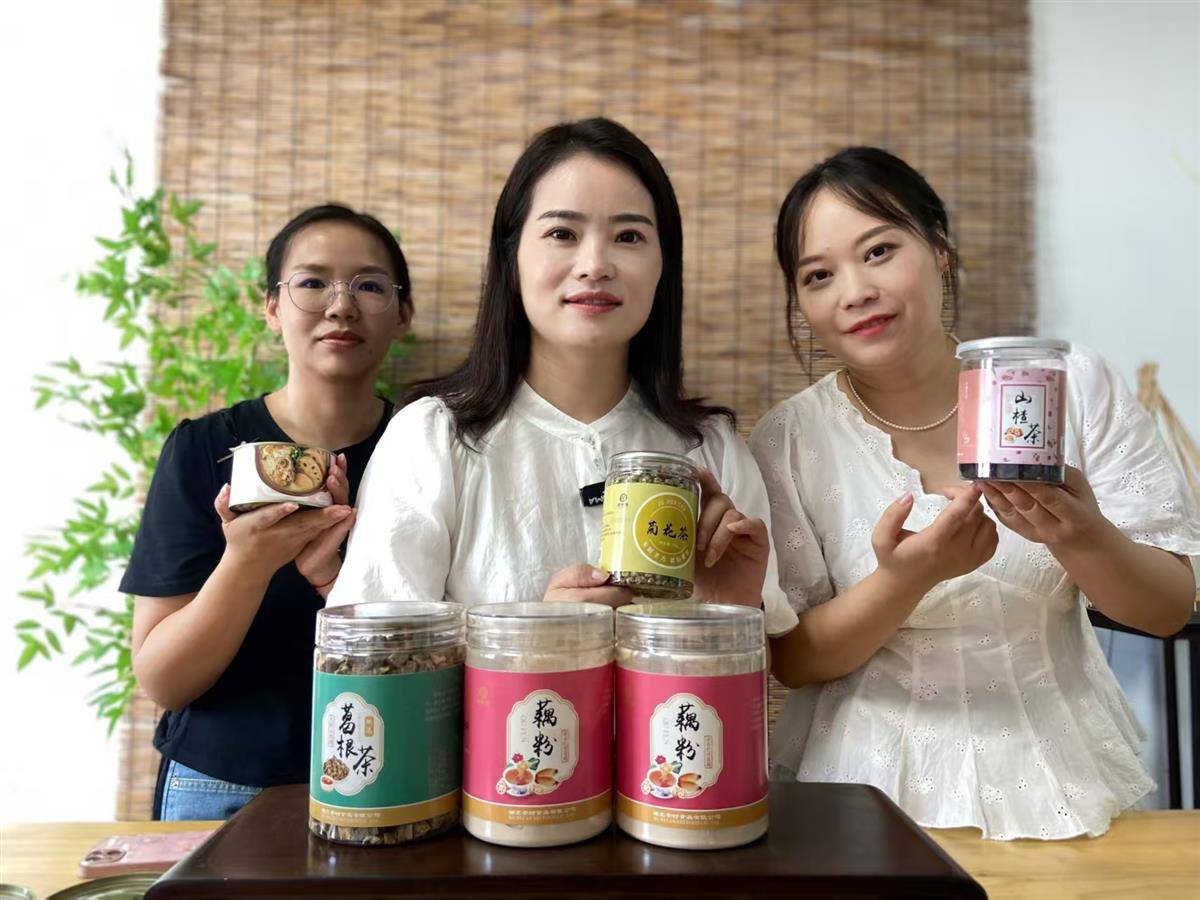聶星星(中)帶領留守婦女直播帶貨。(受訪方供圖)