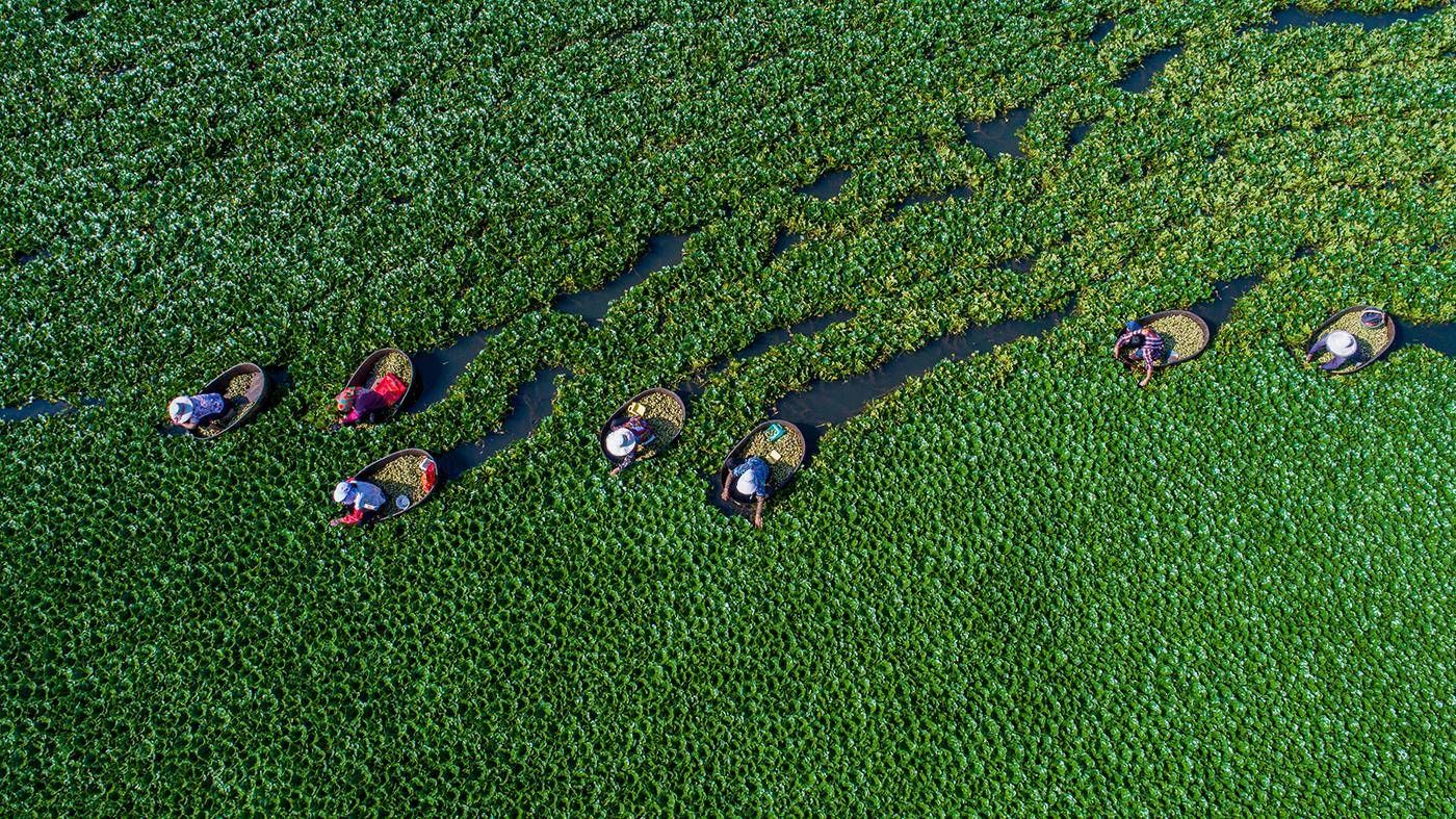 在“85后”回鄉能人張劍雄的帶領下,天井湖村種植了6000畝菱角。(通訊員袁杰 攝)