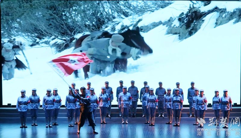 第二章“紅軍”——講述了1927年11月,黃安建立了工農(nóng)民主政權(quán),這是中國共產(chǎn)黨領(lǐng)導(dǎo)的軍隊(duì),第一次被稱為紅軍的革命史實(shí)。男聲情景演唱《我的愛人你可聽見》生動展現(xiàn)出革命先烈們?yōu)槊褡濯?dú)立和人民解放作出的巨大犧牲和不懈奮斗,表達(dá)了對革命英雄的敬仰之情;男女合唱《紅軍不怕遠(yuǎn)征難》讓觀眾深切感受到紅軍戰(zhàn)士們不畏艱難、不懼犧牲的崇高精神。
