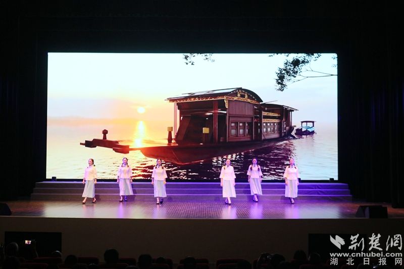 第一章“紅船”——回顧了在中華民族生死存亡關(guān)鍵時刻,嘉興南湖的一葉紅船,承載千鈞,劈波斬浪,繼往開來,莊嚴(yán)宣告中國共產(chǎn)黨誕生的偉大壯舉。女聲表演唱《南湖的船,黨的搖籃》仿佛把觀眾帶到那條紅船上,一同追憶為民族獨(dú)立、人民解放、國家富強(qiáng)而奉獻(xiàn)青春熱血的英雄們;歌伴舞《陳潭秋,你在一口鄉(xiāng)音里》唱出黃岡人民對革命先烈陳潭秋的敬仰,深切緬懷他的豐功偉績和崇高精神。