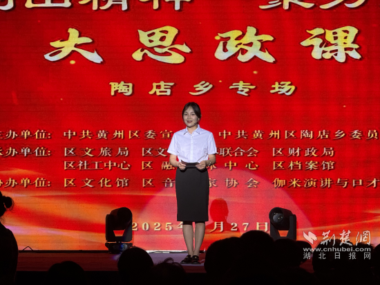 如何讓群眾坐得下、聽得進,讓宣講有趣有料、可感可觸?黃州區(qū)打破傳統(tǒng)模式,創(chuàng)新宣講形式,利用“百姓劇場”“健身廣場”“鄉(xiāng)村舞臺”等宣講陣地,將理論宣講與紅歌演唱、情景演繹、曲藝演出等群眾喜聞樂見的文藝形式相融合,將大思政課宣講送到群眾家門口。