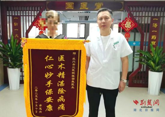 荊楚網(wǎng)(湖北日?qǐng)?bào)網(wǎng))訊(通訊員 涂凱晴)近日,武穴市第三醫(yī)院康復(fù)科診療室內(nèi)暖意融融。一位曾被腦梗后遺癥困擾的患者余先生(化名),在家屬陪同下,將一面繡有“醫(yī)術(shù)精湛除病痛,仁心妙手保安康”的鮮紅錦旗,鄭重交到陳國良手中。