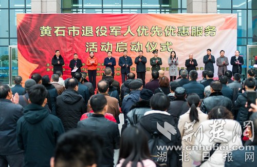 荊楚網客戶端—荊楚網消息(記者 陶慧君 通訊員 趙晶)1月28日上午,隨著“黃石公共服務場所為退役軍人提供優先優惠服務活動”啟動儀式在黃石市綜合客運樞紐站順利舉行,黃石市退役軍人優先優惠服務活動全面啟動。