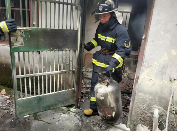 到場后,消防隊員利用干粉滅火器撲滅了明火,并用火鉤將陰燃的火點扒開防止復燃,5分鐘后成功將火撲滅。