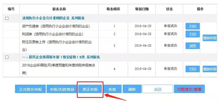 二、進入申報界面,點擊【更正申報】按鈕,如圖: