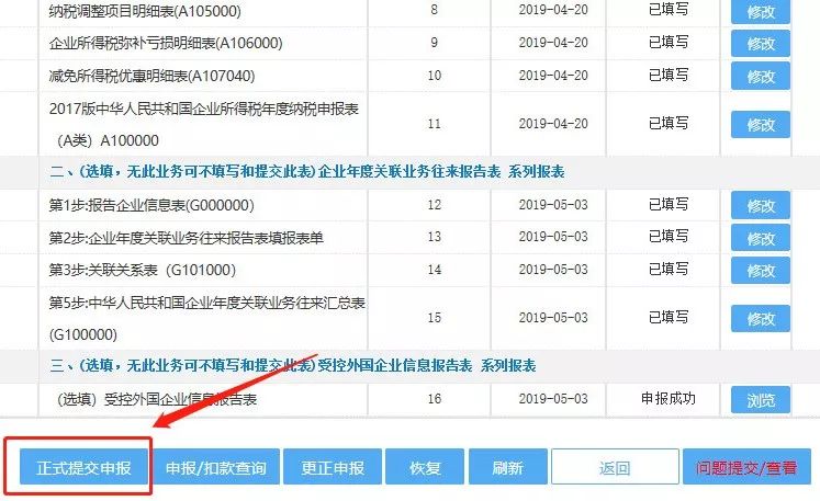 四、修改完成后,點擊【保存報表】,頁面返回后,點擊【正式提交申報】,如圖: