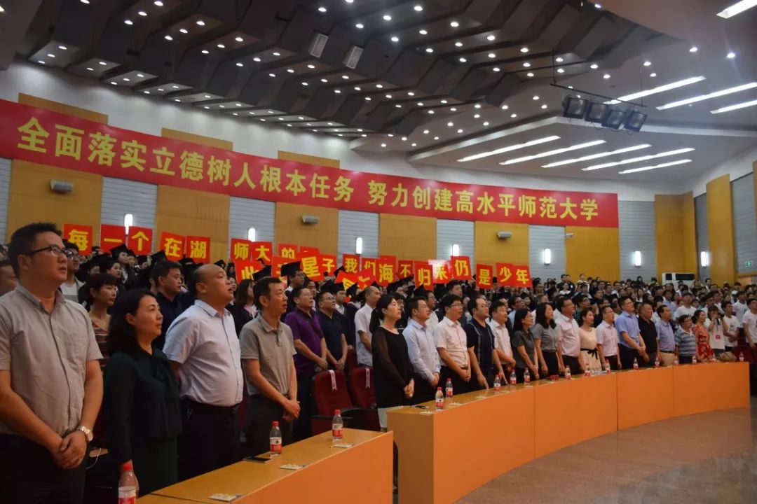 他勉勵廣大畢業生無論何時何地,都要不忘初心、不失本真、不懈奮斗,永葆湖師人誠毅勤敏的做人本色。