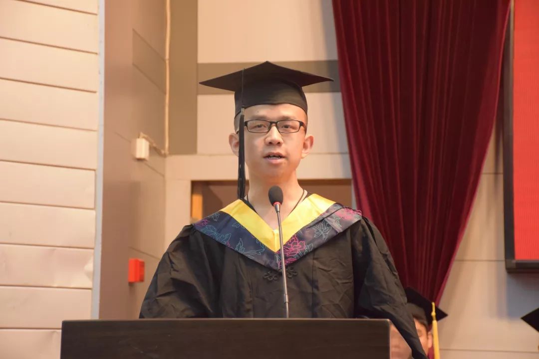 機電與控制工程學院程城、研究生院桑小燕、國際教育學院拉扎提等三名畢業生代表發言,表達了對母校培養和老師教誨的感謝之情,并祝愿母校人才輩出、桃李芬芳。