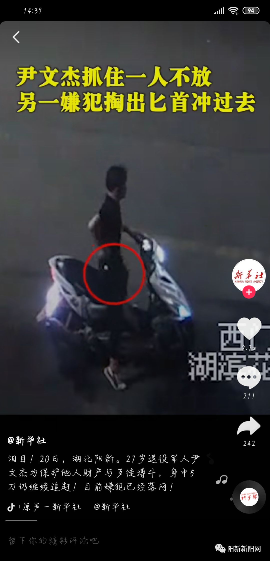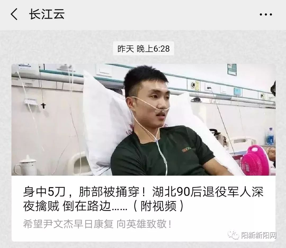 92年退役軍人、陽新小伙尹文杰深夜勇斗歹徒、身負5刀,他服役5年,因公八級殘疾,是10個月前退伍的偵察兵。