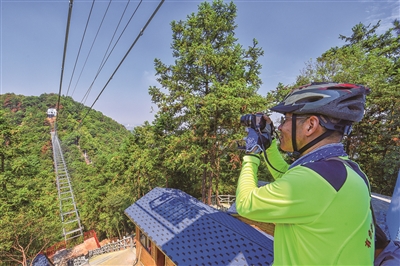 19日,在大冶市金湖街辦上馮村,一名游客在即將建成的玻璃橋前拍照。該橋跨度328米,橋面與地面最大垂直落差125米,是大冶市鄉(xiāng)村旅游項(xiàng)目目前最獨(dú)特的風(fēng)景觀賞橋,預(yù)計(jì)“十一”期間正式建成對(duì)外開(kāi)放。