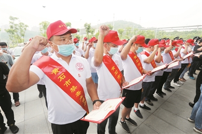 活動現場,我市公安民警、交通運輸管理人員、出租車司機代表等共同宣誓抵制毒品。 記者 熊嶠 攝