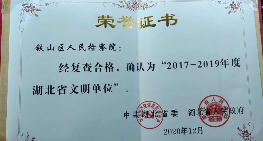 新年伊始,從鐵山檢察院傳出好消息,該院順利通過省級(jí)文明單位復(fù)查,被授予“2017-2019年度湖北省文明單位”榮譽(yù)稱號(hào),這是鐵山檢察院榮獲“2015-2016年度省文明單位”稱號(hào)后再次獲此殊榮。