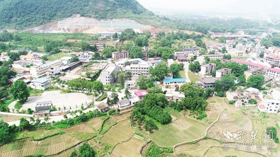 拾級而上,穿過1級尾砂壩,集中連片的石榴樹、桃樹、桂花樹長勢喜人,微風吹來,隨風搖曳,山間田野一片翠綠......
