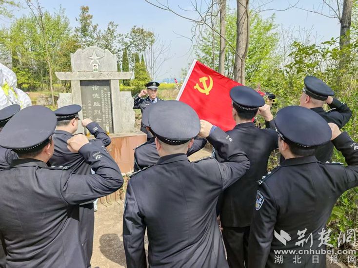 同一天,黃石市公安局經偵支隊全體民警來到烈士徐德勝的墓前開展祭掃活動,以莊嚴儀式追思戰友、寄托哀思。全體人員脫帽默哀、敬獻花圈,重溫入黨誓詞。1999年,徐德勝在追捕逃跑嫌疑人時壯烈犧牲。當年被湖北省政府追記個人一等功,并被追認為革命烈士。活動中,經偵支隊辦公室主任陳舟現場講述了曾經的戰友徐德勝烈士英勇犧牲的感人事跡,號召全體民警以英烈精神為指引,將忠誠信仰轉化為守護經濟安全、服務高質量發展的實際行動。