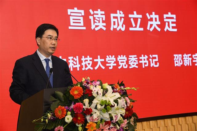 華中科技大學黨委書記邵新宇宣讀成立決定。通訊員辛國勝 攝