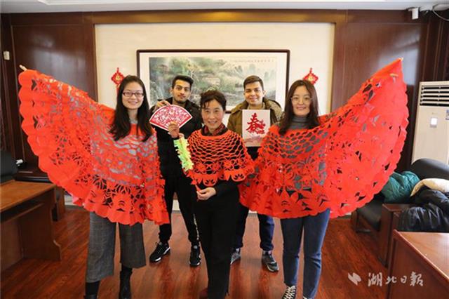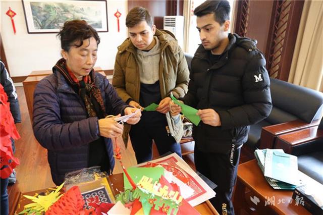 湖北日報訊(記者韓曉玲、通訊員楊科)民族之花、福祿壽喜、春景常在、十二生肖、和平鴿……1月31日,在中南民族大學民族學博物館活動室里,一群留學生跟著老師學剪紙,體驗中國傳統民俗文化。一把剪刀,一張紅紙,剪出各式花樣,留學生們稱贊“真奇妙”。