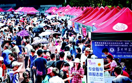 圖為:本報第十六屆高招咨詢會在華中師范大學舉行,北大、清華、浙大等200多所高校招生老師現場為考生和家長答疑解惑。 楚天都市報記者黃士峰攝