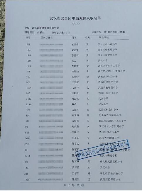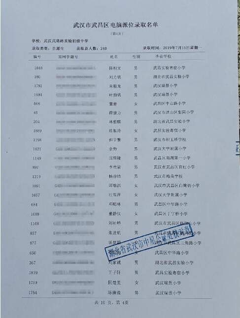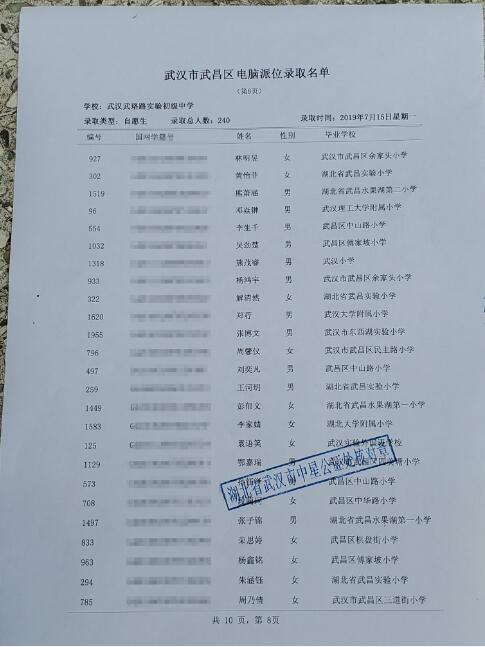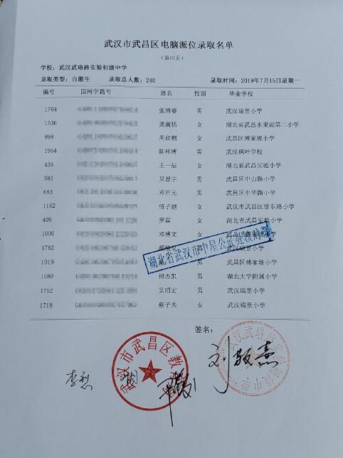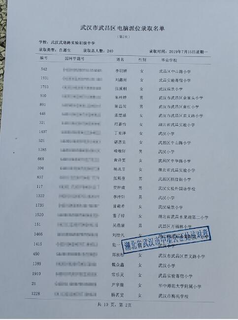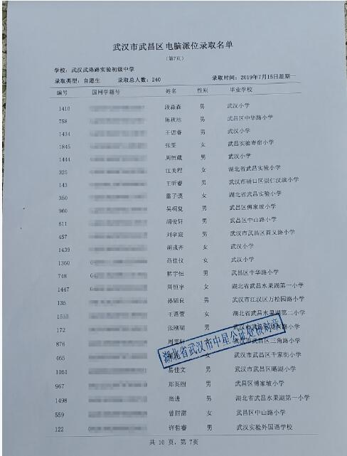 武昌區武珞路實驗初級中學今年共有1968人報名,搖號錄取240人。