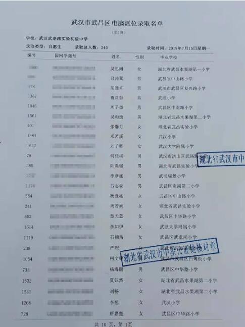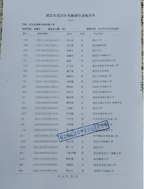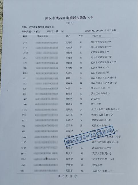 長江日報記者在武昌區武珞路實驗初級中學電腦派位現場看到,除區教育局和相關部門負責人、民辦學校校長外,還有紀檢監察人員、市督查員、人大代表、政協委員以及家長代表全程參與并現場監督,武漢市中星公證處公證員全程公證。電腦派位完畢后,將電腦派位過程中所生成的全部數據提交公證員。