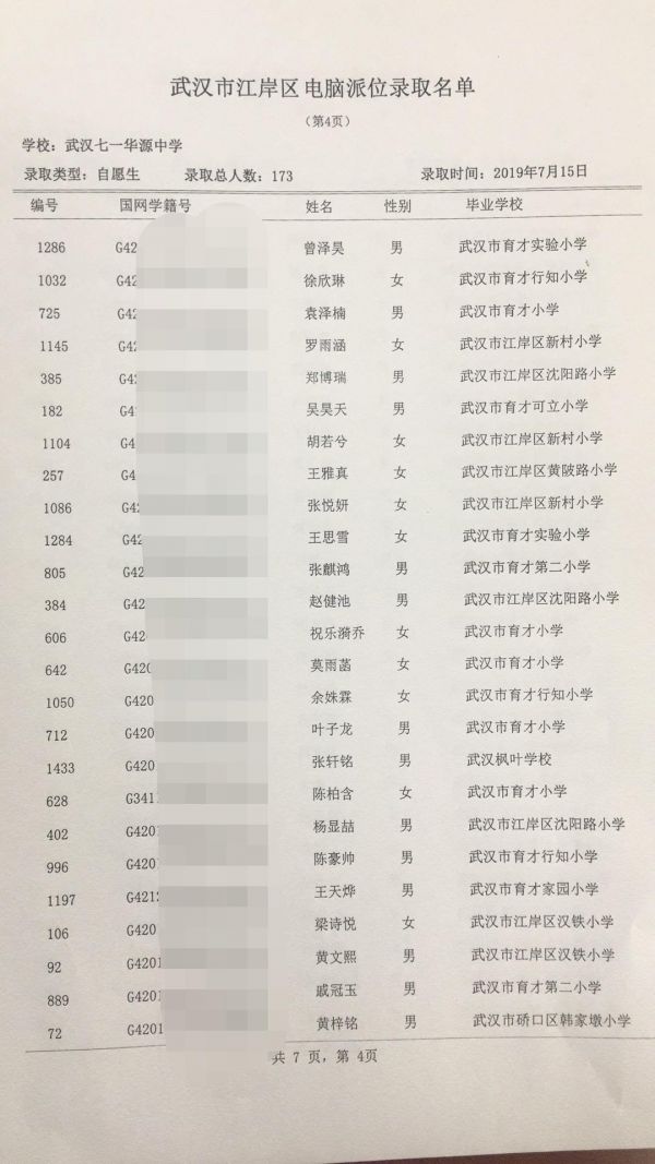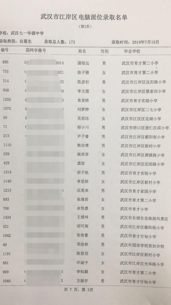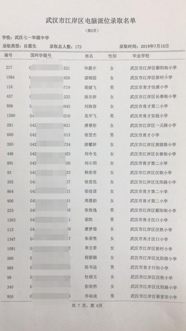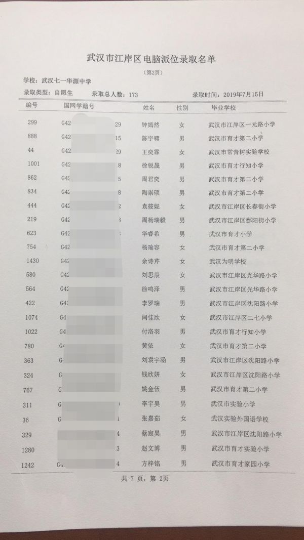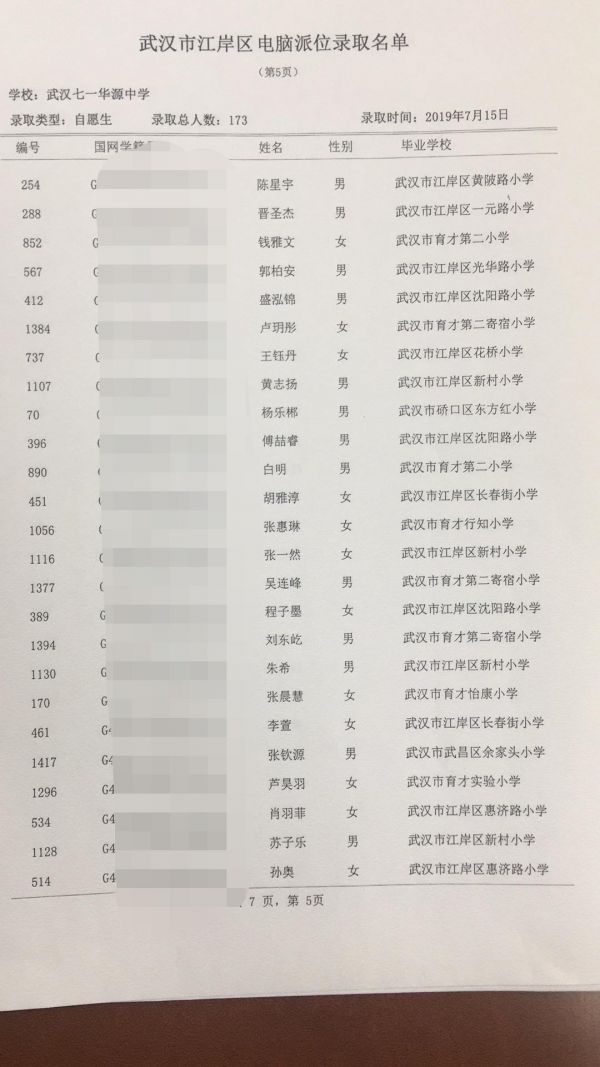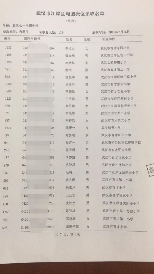 長江日報融媒體訊(記者鄧小龍)15日,武漢市江岸區民辦初中“小升初”搖號結束,武漢七一華源中學搖號錄取名單公布,具體名單如下: