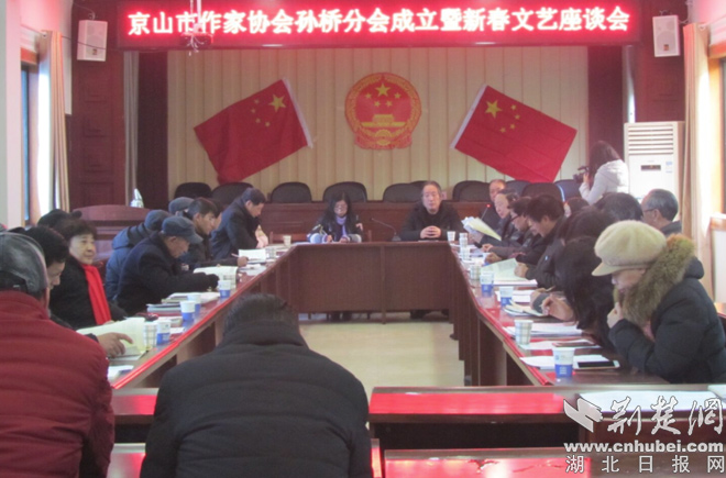 荊楚網(wǎng)消息(通訊員 唐仁珍、徐碧爽)元月8日,孫橋鎮(zhèn)在鎮(zhèn)政府舉辦京山市作家協(xié)會孫橋分會成立儀式暨迎春文藝座談會。孫橋鎮(zhèn)黨委領(lǐng)導(dǎo)、紺弩詩社孫橋分社全體社員、通訊員代表,京山市文聯(lián)、作協(xié)、攝協(xié)、書協(xié)、及市內(nèi)外知名文藝代表40多人參與座談。