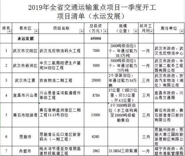 水運發展6.5億元,涵蓋武漢龍欣物流碼頭工程、中交二航局陽邏生產基地3號泊位工程等7個項目;