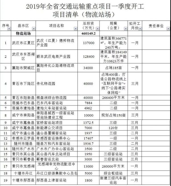 物流站場46億元,建設順豐武漢電商產業園、黃石棋盤洲綜合物流園等19個項目。