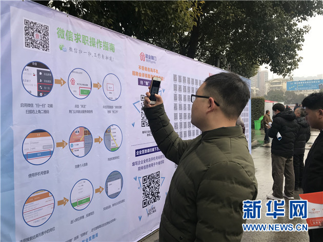 來自荊門京山市的石君一進招聘會場就舉起手機掃碼關注“就業荊門”微信公眾號,被寒風吹得紅撲撲的臉上含著燦爛的笑意:“有了這個就方便了,就算這次沒找到心儀的工作,以后隨時都可以在手機上查閱招聘信息呢!”