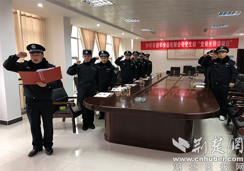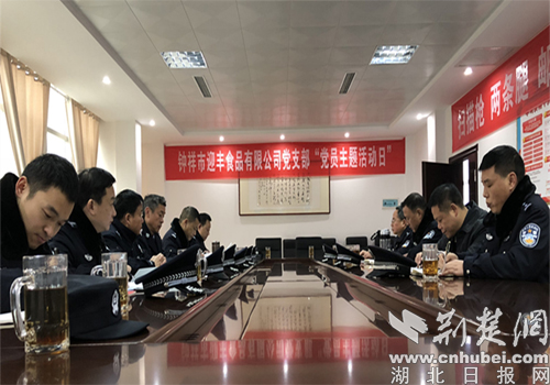 荊楚網消息(通訊員 陳龍)2019年1月7日,鐘祥市公安局政治處、警培中心黨支部結合實際,創新主題黨日活動形式,提升黨建工作活力,全體黨員民警走進鐘祥市迎豐食品有限公司,開展以“進民企學創新,強黨性促黨建”為主題的支部主題黨日活動。