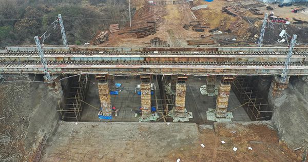 焦柳鐵路從河南焦作通往廣西柳州,是縱貫中國南北的一條重要鐵路干線,行車密度大,平均五六分鐘就有一趟火車經過。在鐵路上作業,不能中斷鐵路運輸,每有火車經過,施工人員都要停止作業,增加防護,對工程施工影響較大,施工人員采取兩班倒加班的方式,保證工程順利進行。目前,工地正在進行鋼筋綁扎、跨梁預制等施工,由于鐵路春運期間不能施工,整個工程預計在今年四五月份完工。