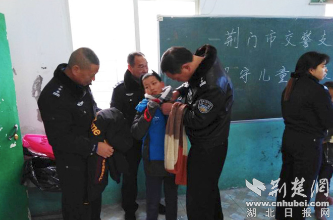 荊楚網消息(通訊員張勝利)這個冬天不再冷,荊門交警關愛山區留守兒童,希望他們安全、健康、快樂的成長。2019年1月11日上午10時,荊門市交警支隊二大隊王小斌同志帶領黨員民警走進石橋驛鎮鹽池中心小學,開展1月份“黨員主題日”暨關愛留守兒童主題活動,受到了師生的熱烈歡迎,對交警多年來堅持關愛留守兒童致以了崇高的敬意。民警們為留守兒童們送上了各類書籍、棉襖、圍巾、手套、耳罩等生活學習用品,讓留守兒童在這個冬天體會不一樣的溫暖。