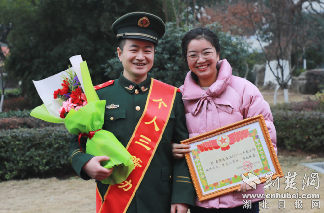 三等功臣彭磊與妻子合影留念。通訊員供圖