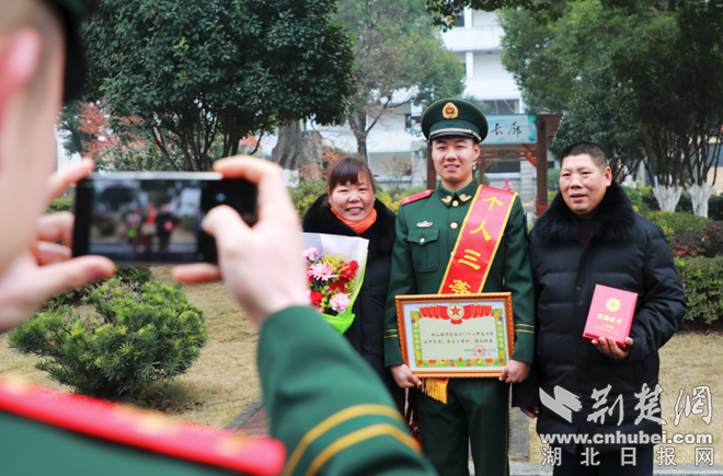 荊楚網客戶端-荊楚網消息(通訊員 李龍昌、張瑜)“當兵第二年,就能與父母分享榮耀時刻,這讓我對這身軍裝更加熱愛、更加珍惜,也對完成練兵備戰任務充滿了信心!”1月14日,對于上等兵胡山旺來說,是個特殊又難忘的日子。這一天,武警湖北總隊荊門支隊隆重舉行年度工作總結表彰大會,與往年不同的是,該支隊特別邀請了先進典型的家屬們前來參加,讓一直在背后默默付出的軍屬們一道見證這來之不易的榮譽。