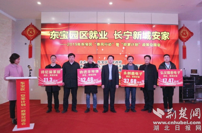 荊楚網客戶端-荊楚網消息(記者 安從斌、通訊員 劉洋)1月23日,以“東寶園區就業 長寧新城安家”為主題的2019年“春風行動”暨“安家計劃”政策兌現會在東寶工業園區舉行。