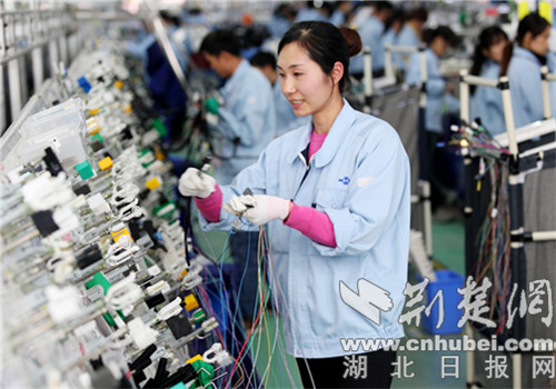 2月13日,鐘祥武住電裝有限公司生產車間,隨處可見員工穿梭忙碌的身影,每一條線束在他們的操作下被熟練的纏繞在操作臺上。據了解,從正月初七就開始,公司全體員工都已投入到生產中,確保一季度2500萬的生產目標能夠如期完成。該公司是世界500強企業之一的日本住友株式會社中國子公司——武漢住電在鐘祥新建的分公司,主要生產汽車線束,是東風本田有限公司的重要供應商之一。2018年,該公司線束生產線已增至17條,實現產值9000多萬元。2019年下半年,該公司二期投產后,將實現億元產值目標。