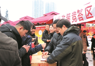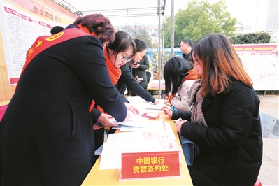 自主創業的年輕人朱景成,2月15日在招聘會現場的創業服務區當場簽下了15萬元的創業貸款合同。剛過而立之年的朱景成,去年創辦了自己的裝飾公司,一心想讓公司繼續發展壯大。“貸款2年一還,6年免息,2年后還可以繼續貸款。有了這筆資金托底,我心里底氣更足了!”揮著手里的合同,小伙子信心滿滿。