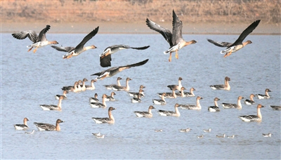 再過幾天,棲息黃蕩湖越冬的大雁又將北遷飛回繁殖地育雛。深秋時節,大雁南歸時,黃蕩湖將會迎來更多的越冬大雁。