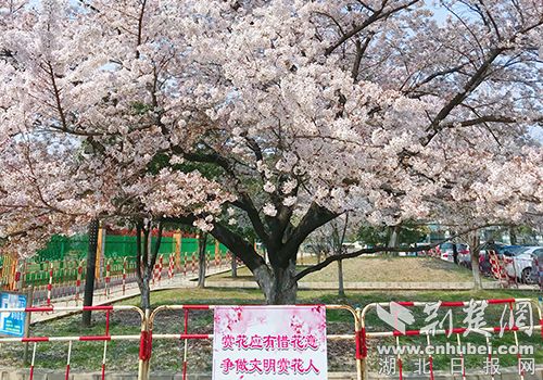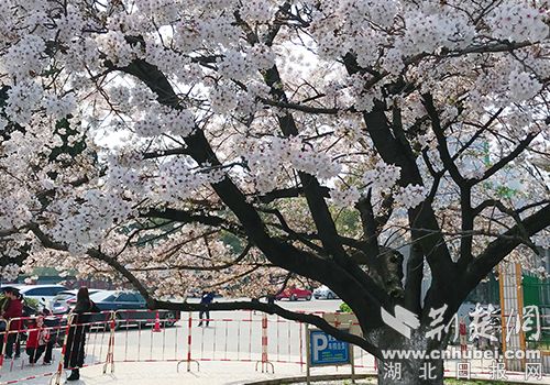 3月28日,在荊門熱電廠金色陽光大酒店門前,一株一株櫻花開得正艷,滿樹爛漫,遠遠在馬路邊就聞到一股清香。樹下,有不少市民在合影、留戀。據悉,這幾株櫻花已生長50年,形成一片小小的櫻花林,每年春天盛開的時候,煞是好看,幾乎每天都有市民絡繹不絕前來欣賞、合影。櫻花盛花期很短,約一周時間,想賞櫻的朋友請盡快前往觀賞。