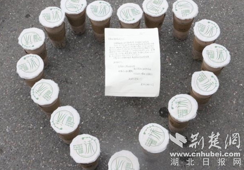 當特勤中隊的消防員們收到這份特殊的禮物后十分感動,還不舍得這么快喝掉奶茶,他們將信擺在中間,用奶茶圍住擺成心形,拍照留念。