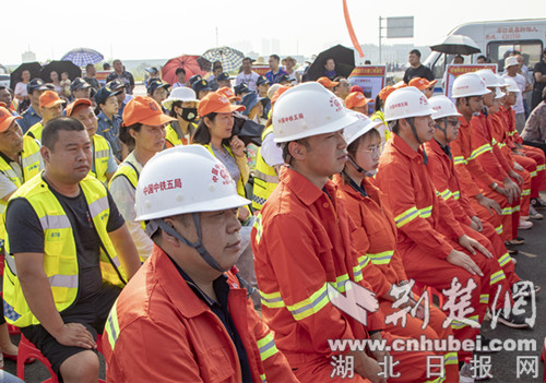 大橋建設(shè)者參加通車儀式。(通訊員 供圖)