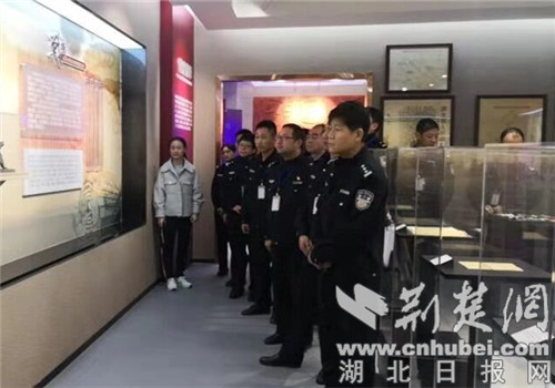 荊楚網客戶端一荊楚網消息(通訊員 任米雪)“這些歷代警用的帽徽、領章、領花、肩章、胸牌、警號,很多來自老公安們的收藏捐贈!”“這個電子宣誓墻好有時代感!” 11月21日上午,在全黨深入開展“不忘初心、牢記使命”主題教育中,荊門市公安局東寶分局龍泉派出所組織除出差、辦案以外的黨員民輔警,前往市公安局開展主題為“接受黨性教育再出發”的11月份第二次黨員主題日活動。